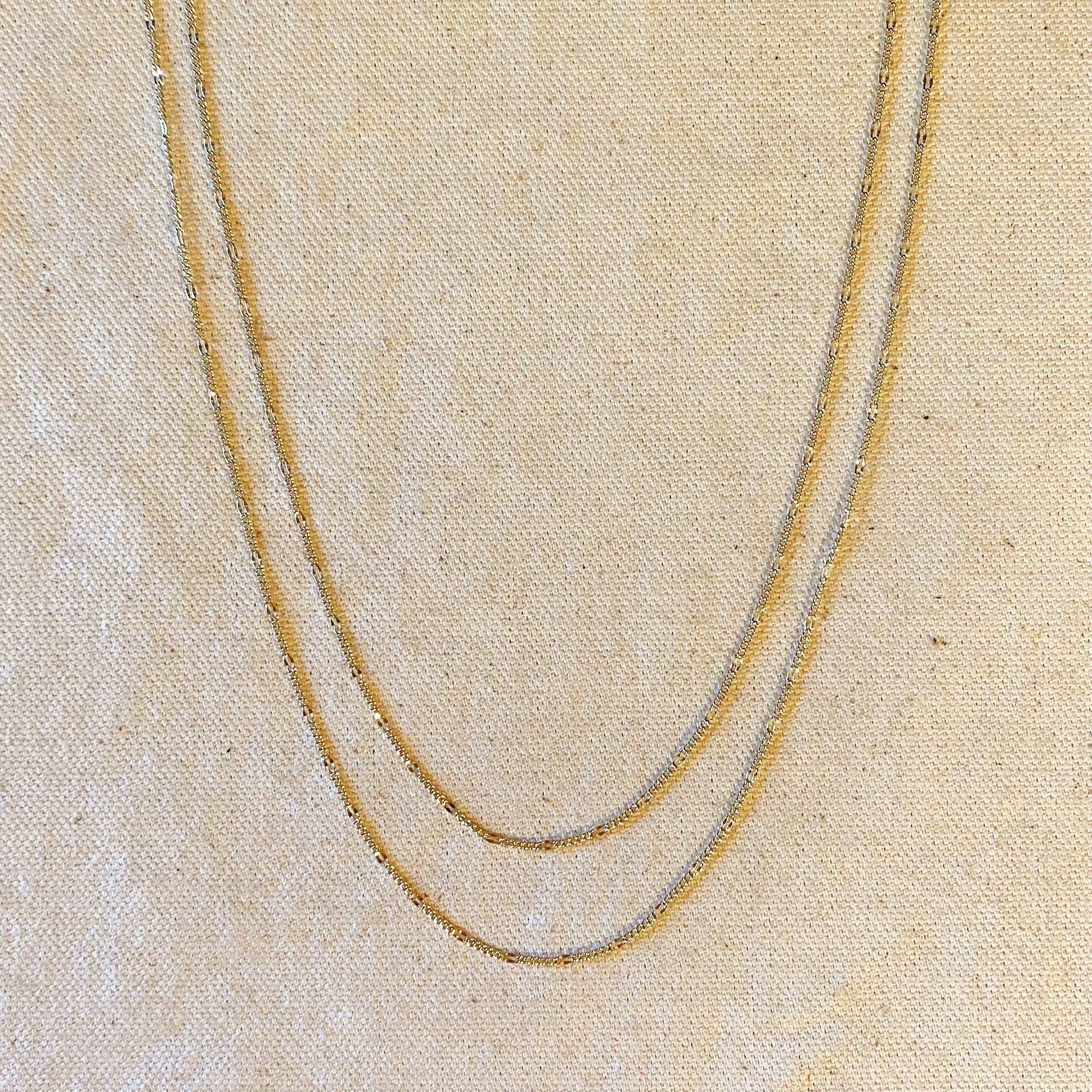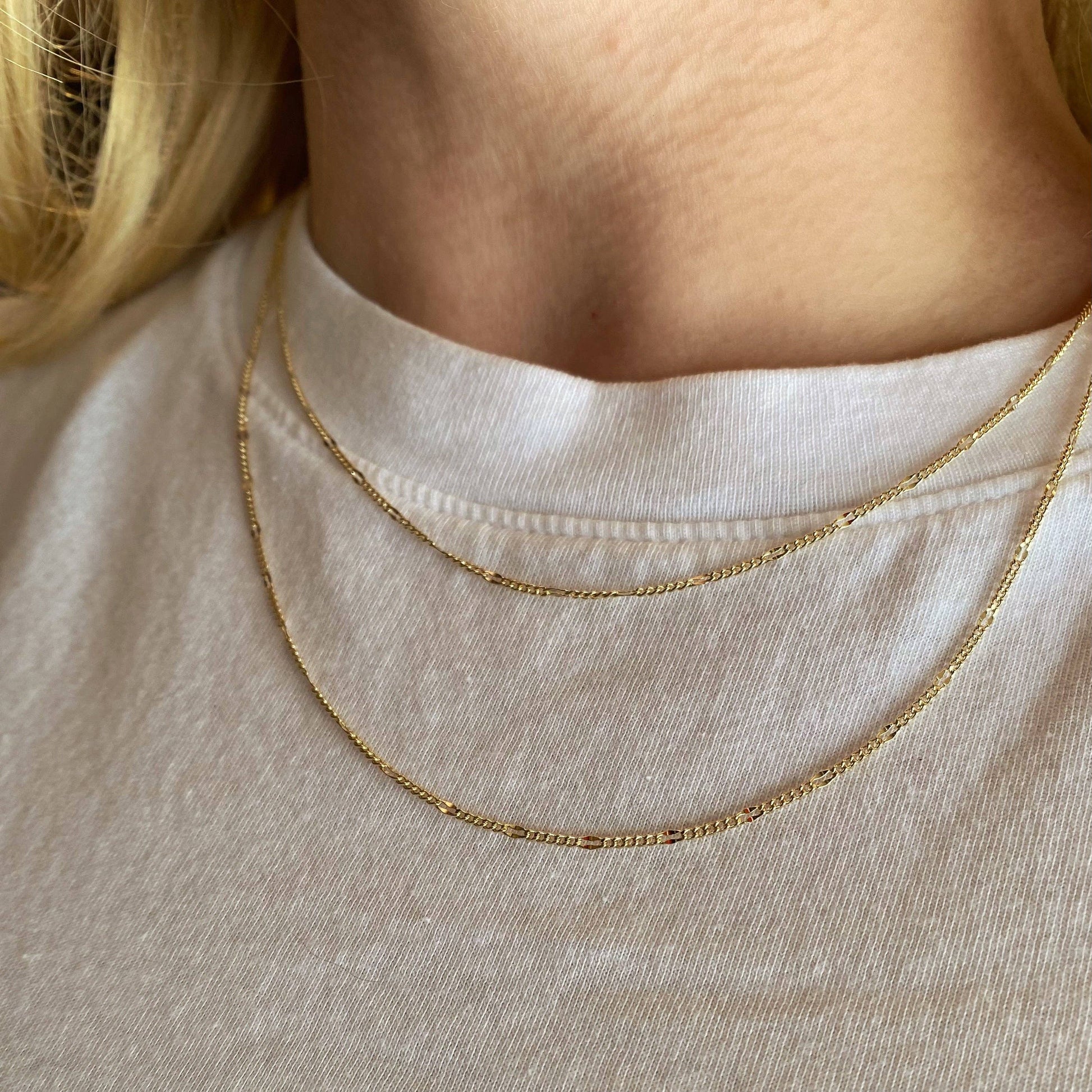 A thin Figaro Battuta, * Metal: 18k gold-filled * Thickness: 1.8mm wide * Length: 18 inches and 20 inches * Hypoallergenic + waterproof *