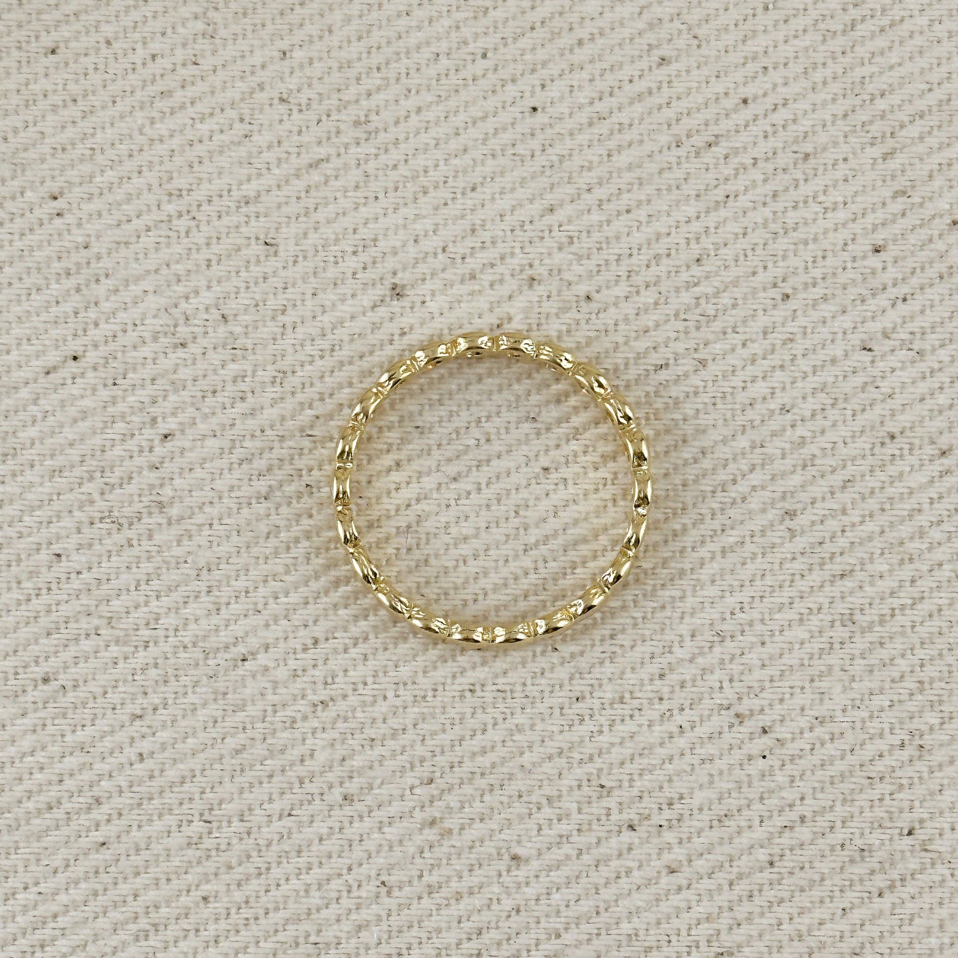 Our elegant 18k Gold Filled Flat Beaded Band Ring blends classic charm with modern sophistication. The 2.5mm width features a delicate beaded pattern that dances with light, while the flat profile ensures maximum comfort. Perfect for both minimalist and bohemian styles, this durable gold-filled ring can be worn alone or stacked for a personalized look. * Metal: 18k Gold Filled * Waterproof * Hypoallergenic jewelry *