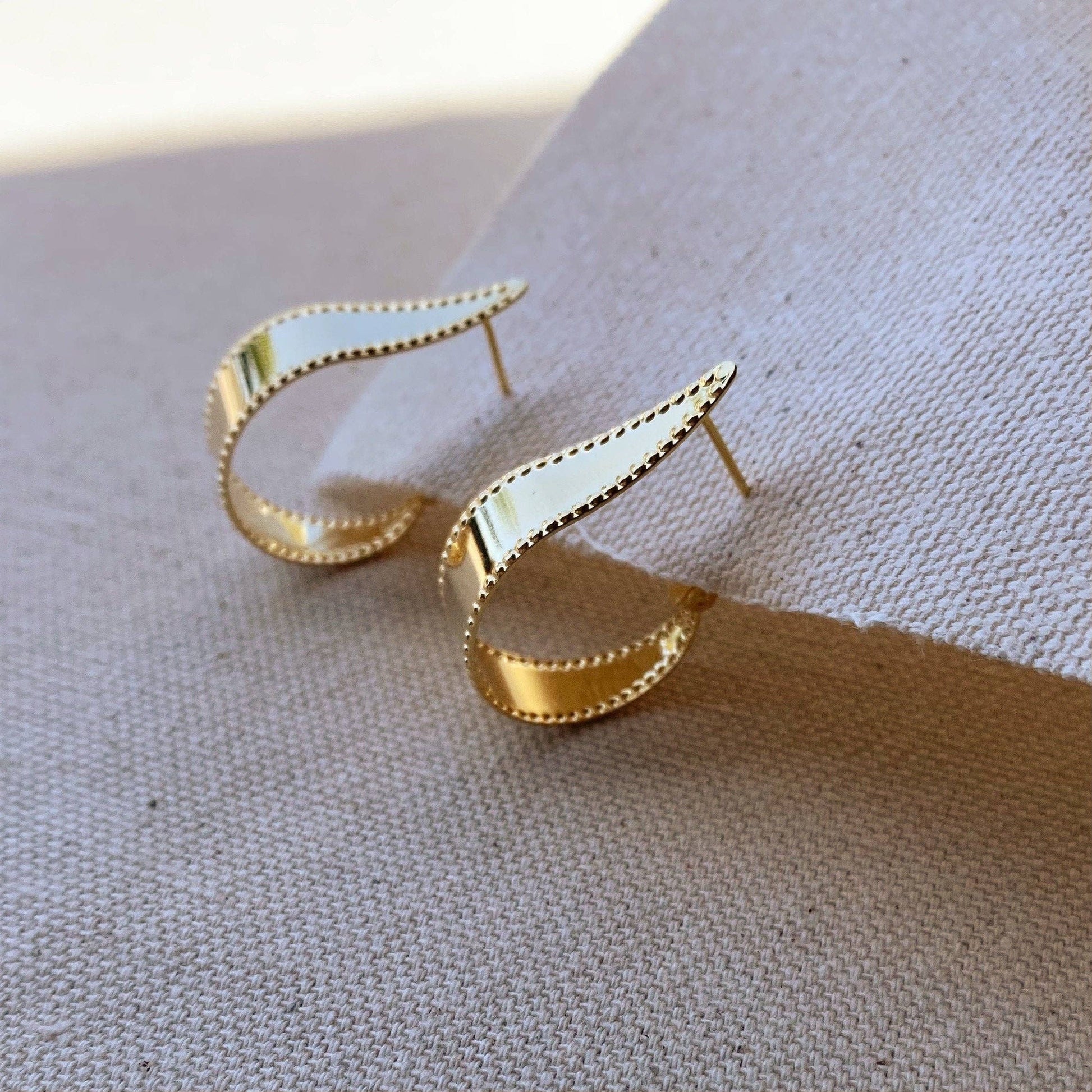 A unique and gorgeous high quality 18k gold filled hoop earrings. Hypoallergenic earrings that you can wear while bathing, on the beach or in the pool.