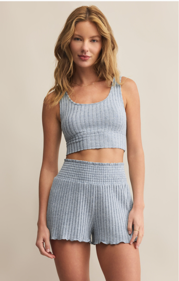 Soft texture meets easygoing style in the Dawn Smocked Ribbed Short. Designed with a high-rise fit and a wide smocked waistband, this short offers gentle structure and all-day comfort. Made from midweight Silky Rib, it has just the right amount of stretch and a subtle sheen. With a 2 1/4" inseam and a regular fit, it’s ideal for lounging or pairing with the matching top for a put-together yet relaxed set.