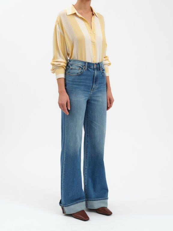 Elevate your everyday denim with these high-rise wide leg jeans in a versatile medium wash. Designed with a long, full-length silhouette and finished with a statement cuffed hem, they blend classic style with a modern edge. The high waist enhances your shape, while the wide leg offers comfort and effortless movement.