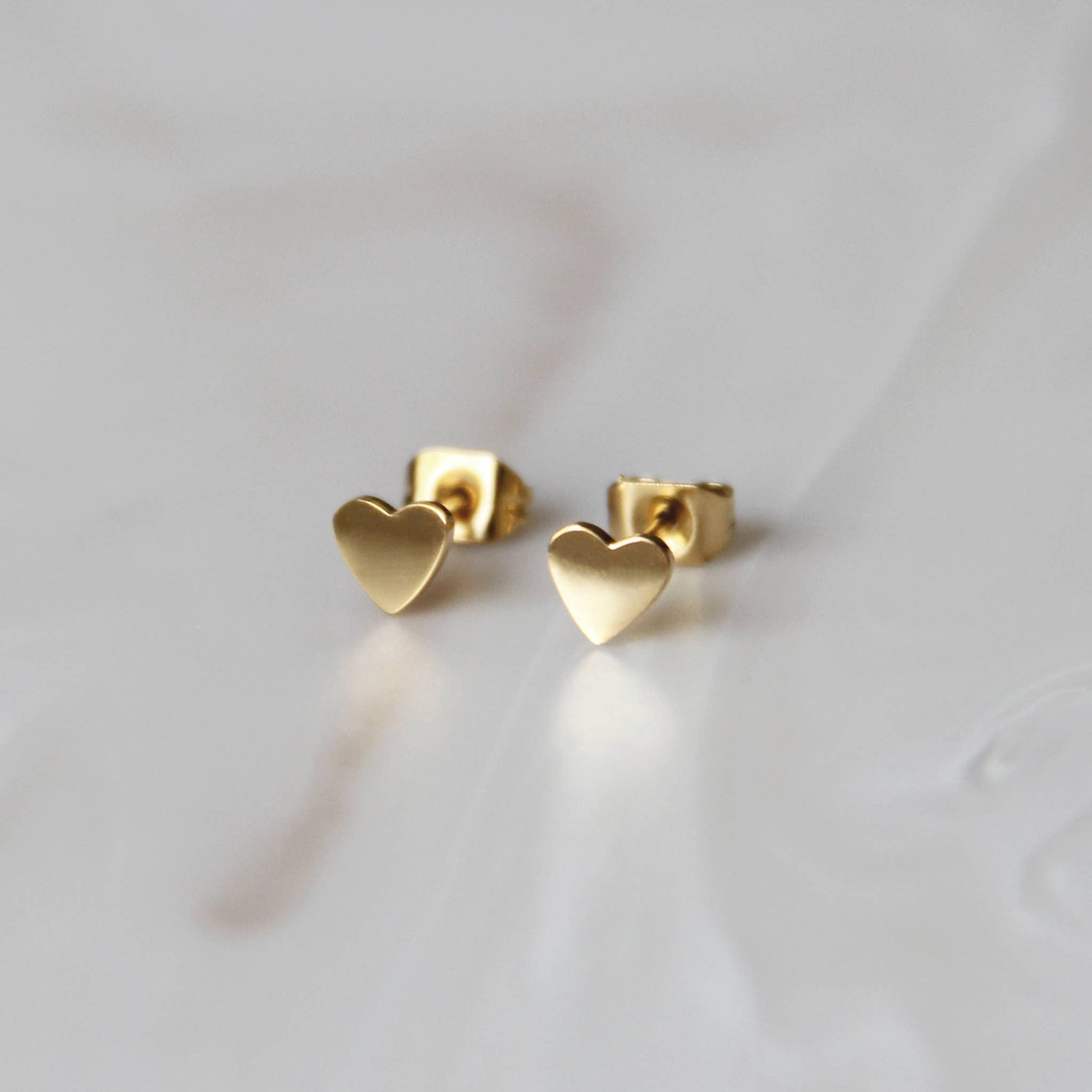 These petite 5 mm heart studs add a sweet, subtle touch to any look. Crafted with 18k gold plating and made nickel- and lead-free for comfortable everyday wear.