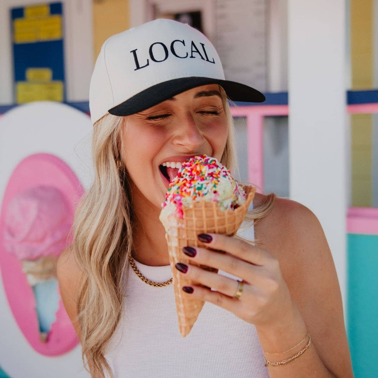 For the customers who are proud of where they came from – this LOCAL Hat is for you! Featuring a tan crown with a colored brim (because why be basic?), this hat proudly showcases “LOCAL” embroidered right on the front. It's perfect for the girl who’s always talking about how “home is where the heart is” and thinks her local coffee shop is way better than the chain. With an adjustable snapback, this hat fits anyone who's ready to show off their hometown pride in style. Whether she’s out grabbing a coffee, hitting up the farmer’s market, or just hanging out with her friends, this hat is the perfect addition to any casual outfit. Plus, it’s the kind of hat that screams, “Yeah, I’m a local, and I’m proud of it!” (not mesh) snapback adjustable sizing 65% polyester, 35% cotton.