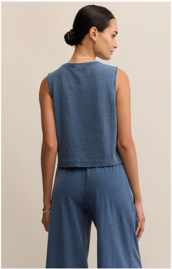 Easy, lived-in, and effortlessly cool. The Sloane Muscle Tank is crafted from soft, lightweight cotton jersey with a mineral wash for that vintage, sun-faded look. Designed with a classic crew neckline and a sleeveless cut, it pairs perfectly with the Sloane Lounge Pant for a coordinated, off-duty vibe.